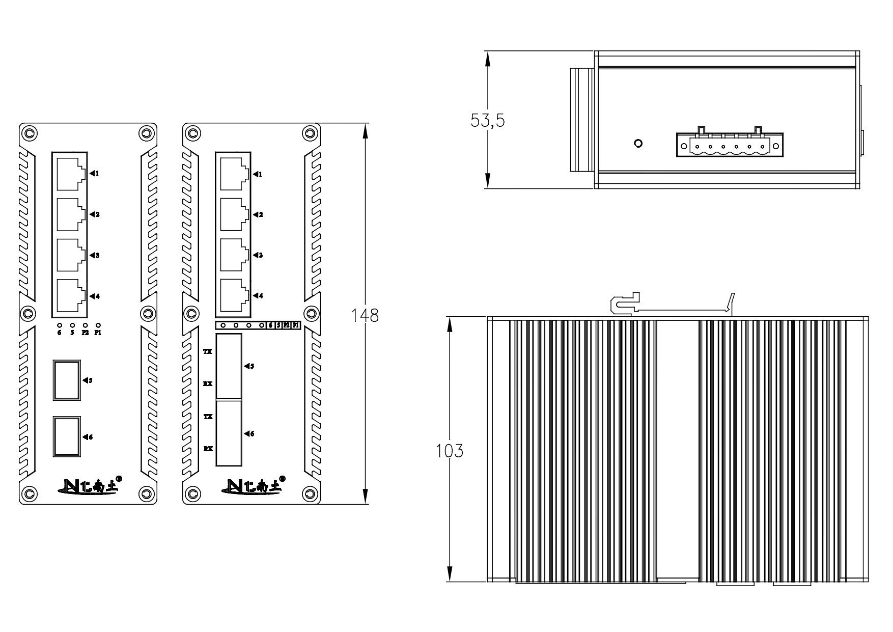 工業(yè)級(jí)(NT品牌)百兆非網(wǎng)管2光4電2光4電-SFP接口-導(dǎo)軌式-DC12~52V供電-寬溫(-40℃-85℃)。默認(rèn)不含AC電源適配器和不含光模塊。 |