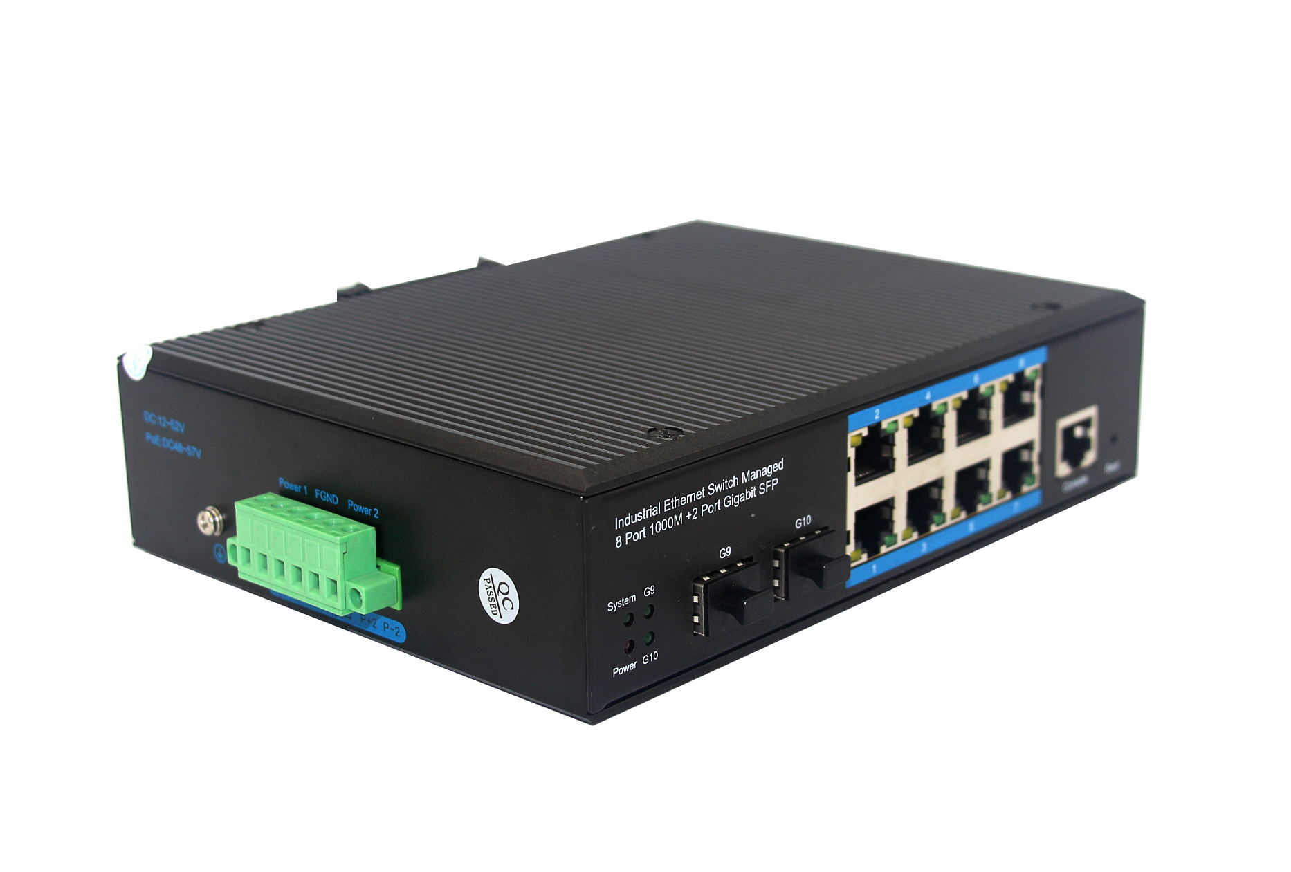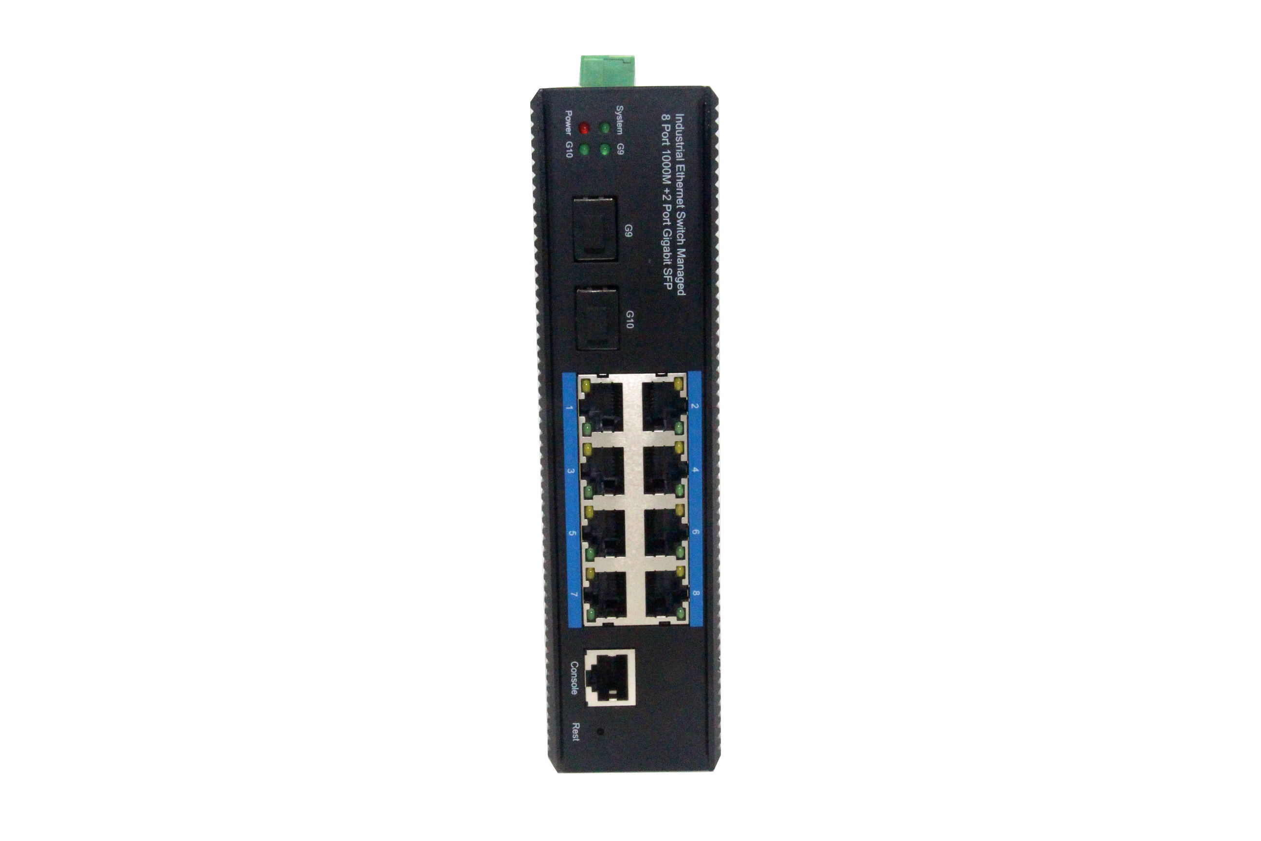 網管型千兆2光8電工業以太網交換機,產品符合FCC、CE、ROHS標準。支持2個千兆光口和8個千兆電口,支持一路console口;支持工業現場所需的以太網二層協議,保證通信網絡的穩定性;該系列交換機采用低功耗、無風扇設計,確保無噪聲干擾,同時支持-40~85℃工作溫度和良好的EMC電磁兼容性能,保證在惡劣的工業環境中保持穩定的工作,為工廠自動化,智能交通,視頻監控等工業應用領域組建快速穩定的網絡終端接入網絡提供安全可靠的解決方案。護等級的外殼及 LED 指示燈,使之成為一個即插即用的工業級設備,為用戶的以太網設備聯網提供可靠、便捷的解決方案。
