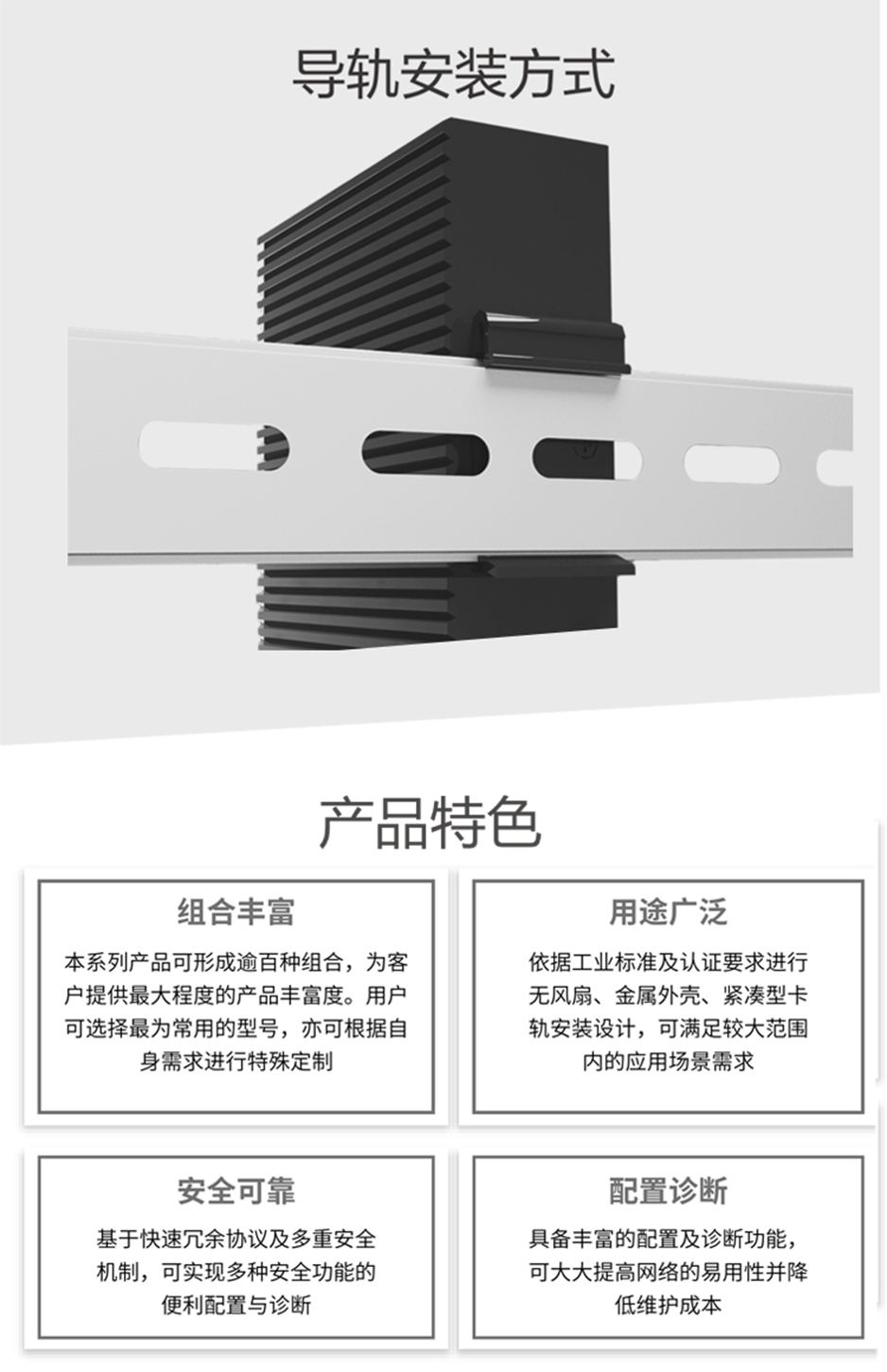 工業(yè)級(jí)(NT品牌)千兆非網(wǎng)管2光4電-ST接口單模雙纖20KM-導(dǎo)軌式-DC12~52V供電-寬溫(-40℃-85℃)。默認(rèn)不含AC電源適配器。 |