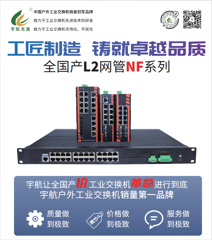 宇航全國產工業交換機系列已實現整體升級,邁上全新臺階,本次重點展示的全國產萬兆核心與二層交換機,徹底證明了國產方案已能無縫替代美系、臺系產品,且不懼性能比較,全國產工業交換機已告別“可用”,進入“好用””的全新階段。我們提供多樣化的規格選擇,以滿足您不同場景的嚴苛需求。