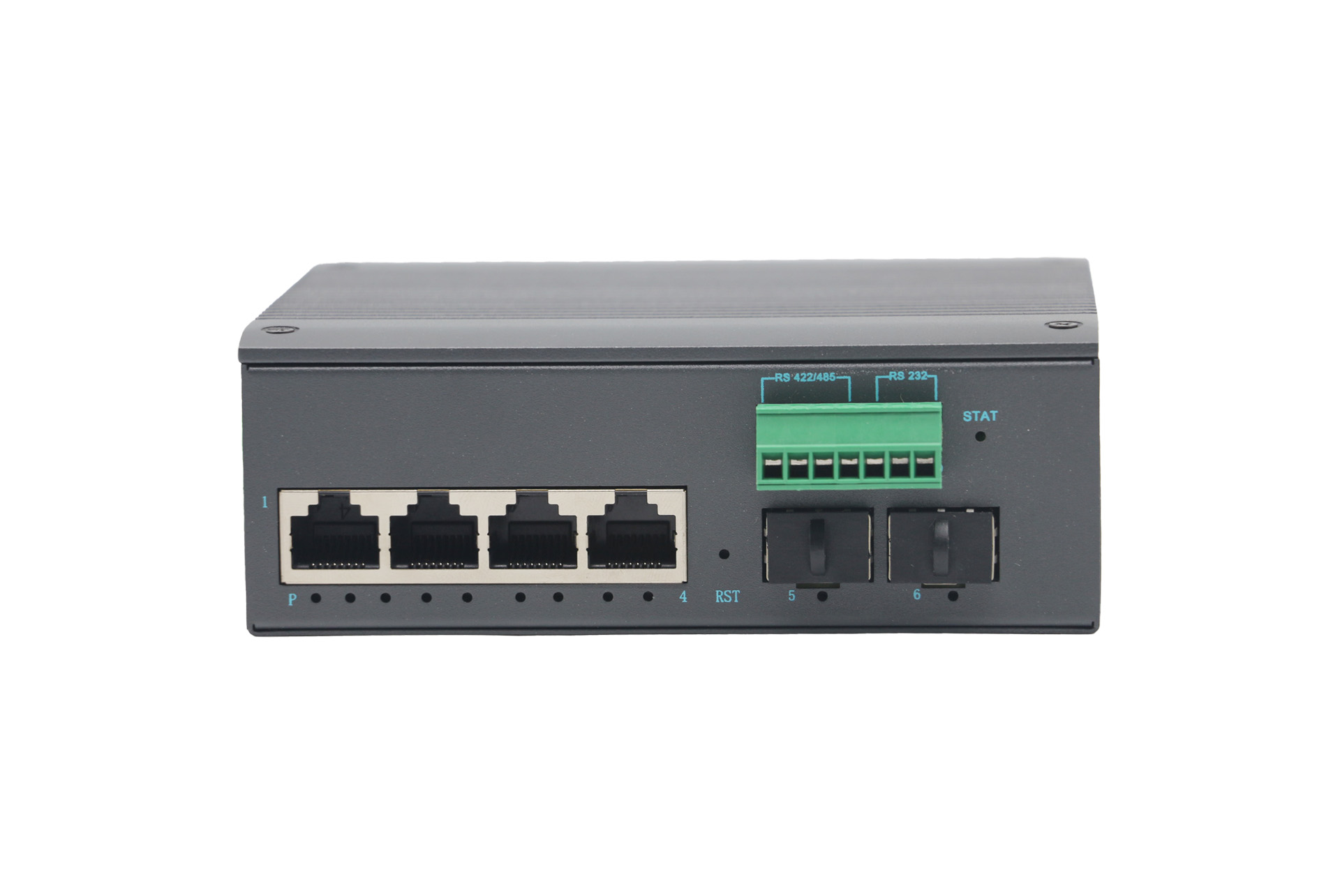 YH600-QGC24GS-W-SFP-RS485系列WEB網(wǎng)管交換機(jī),產(chǎn)品符合FCC、CE、ROHS標(biāo)準(zhǔn),提供2個千兆光口、4個千兆電口和一路三合一RS232/RS422/RS485串口,支持工業(yè)現(xiàn)場所需的以太網(wǎng)二層協(xié)議,保證通信網(wǎng)絡(luò)的穩(wěn)定性。該系列交換機(jī)采用低功耗、無風(fēng)扇設(shè)計,確保無噪聲干擾,同時支持-30~70℃工作溫度和良好的EMC電磁兼容性能,保證在惡劣的工業(yè)環(huán)境中保持穩(wěn)定的工作,為工廠自動化,智能交通,視頻監(jiān)控等工業(yè)應(yīng)用領(lǐng)域組建快速穩(wěn)定的網(wǎng)絡(luò)終端接入網(wǎng)絡(luò)提供安全可靠的解決方案。