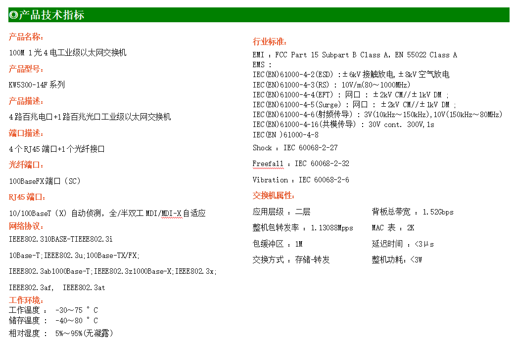 首頁產品系列百兆1光4電寬溫KW5300-14F-SC20