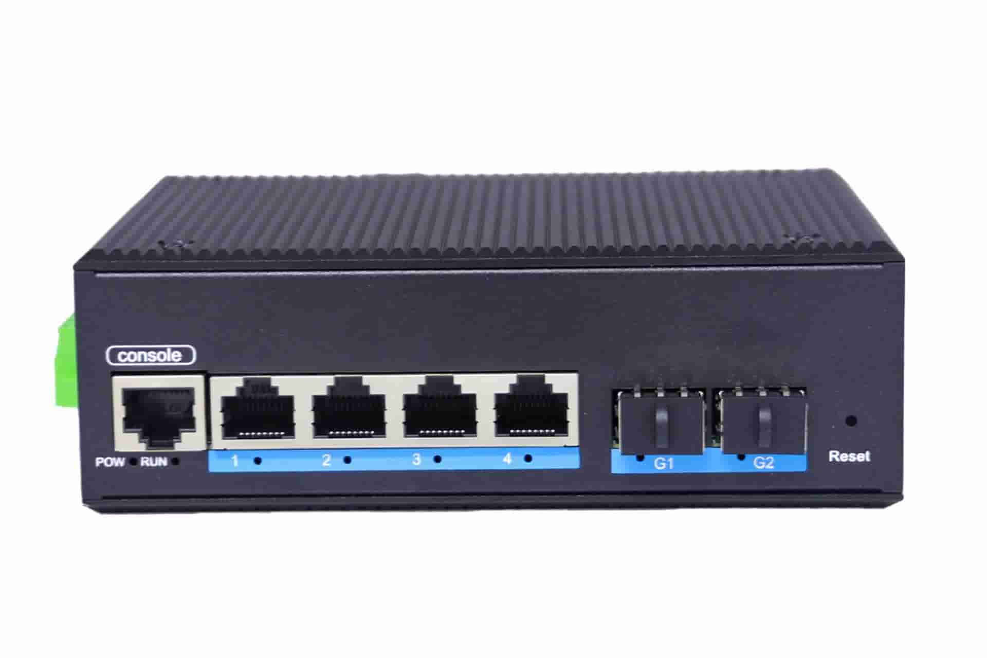 RD24GFS-M-SFP是網管型工業以太網交換機,產品符合FCC、CE、RoHS標準。支持2個千兆光口和4個百兆電口;支持工業現場所需的以太網二層協議,保證通信網絡的穩定性;該系列交換機采用低功耗、無風扇設計,確保無噪聲干擾,同時支持-40~80℃工作溫度和良好的EMC電磁兼容性能,保證在惡劣的工業環境中保持穩定的工作,為工廠自動化,智能交通,視頻監控等工業應用領域組建快速穩定的網絡終端接入網絡提供安全可靠的解決方案。