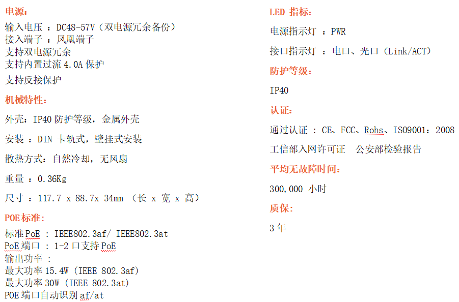 2路千兆POE電口+1路千兆FX光口工業級以太網POE交換機,支持2個10/100/1000Base-TX電口和1個1000Base-X光口。產品符合FCC、CE、ROHS標準。RDL12GP系列交換機具有-40℃~75℃的工作溫度,具有超強的堅固度能適應各種嚴苛環境,也可以非常方便的安置在空間緊湊的控制箱中。導軌的安裝特性、寬溫操作及擁有IP40防護等級的外殼及LED指示燈,使RDL12GP成為一個即插即用的工業級設備,為用戶的以太網設備聯網提供可靠、便捷的解決方案。