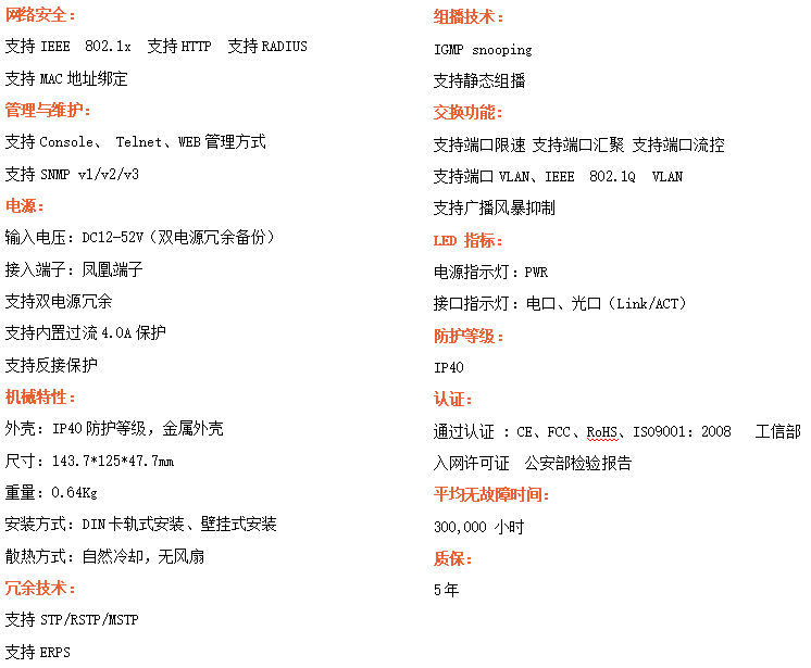 ●支持STP/RSTP/ERPS,SNMPv1/v2/v3,確保網絡安全