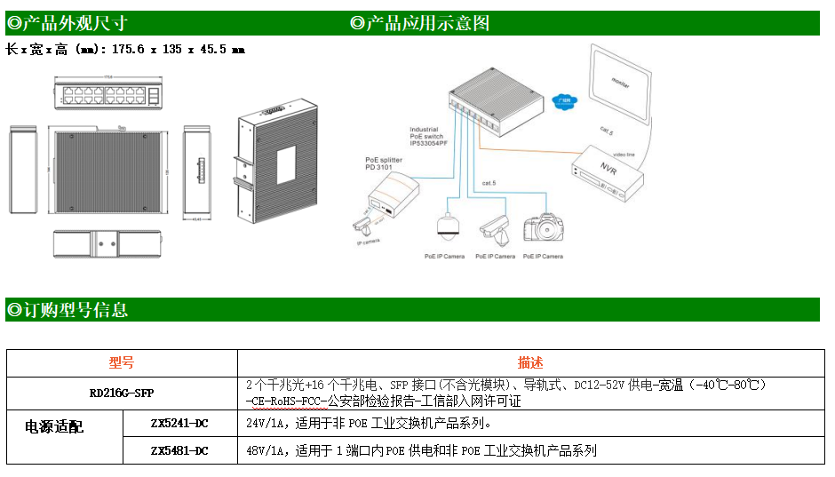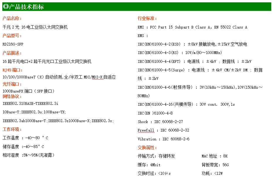 RD216G-SFP工業(yè)級以太網交換機,支持16個10Base-T/100Base-T/1000Base-TX電口和2個1000Base-X光口。產品符合FCC、CE、ROHS標準。RD216G-SFP交換機具有-40℃~80℃的工作溫度,具有超強的堅固度能適應各種嚴苛環(huán)境,也可以非常方便的安置在空間緊湊的控制箱中。導軌的安裝特性、寬溫操作及擁有IP40防護等級的外殼及LED指示燈,使RD216G-SFP成為一個即插即用的工業(yè)級設備,為用戶的以太網設備聯(lián)網提供可靠、便捷的解決方案。