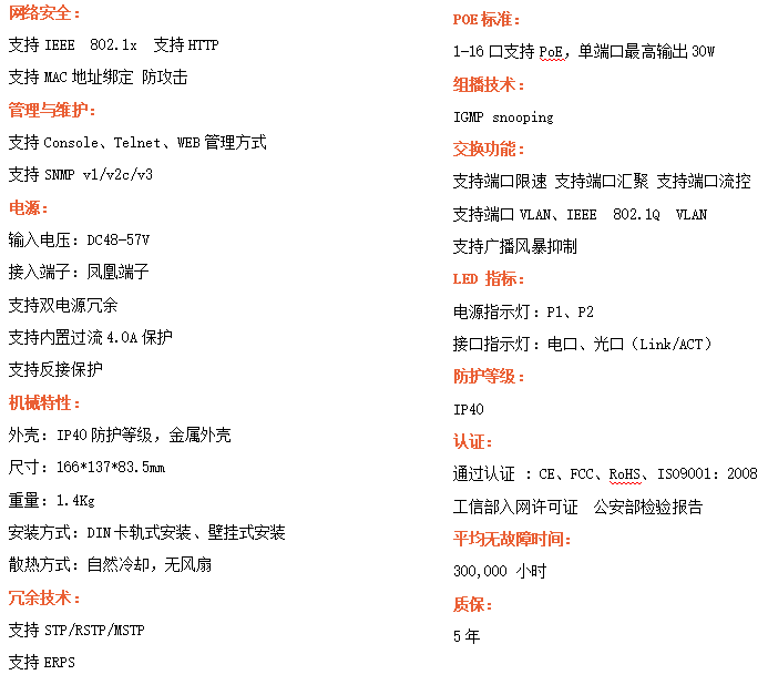 ●管理功能:支持WEB、CLI、SNMP管理方式