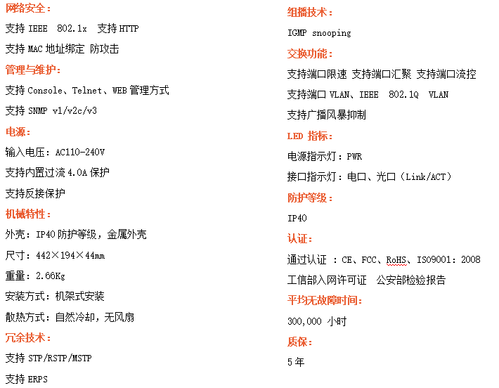 ●管理功能:支持WEB、CLI、SNMP管理方式